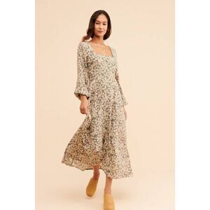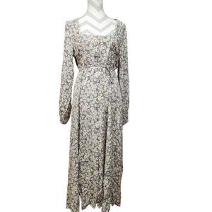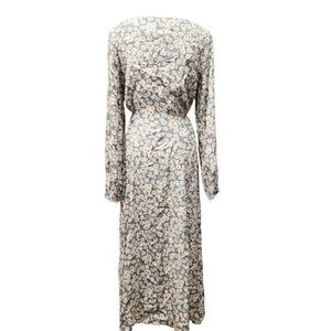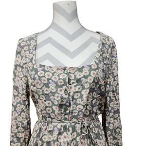Rolla's Size Large Ruby Daisies Floral Printed A-Line Dress Boho Chic Button Front Closure Tie Belt Long Sleeve Green Square Neck Line Rayon Blend