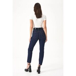New with Tag, list price $129, Anthropologie Brand Rolla's women's Comfort Rinse Navy Blue High Rise Slim Dusters Jeans, size 27 US (9 Aussie) x 29 inch inseam, zipper with button closure, 5-pocket design, Slim Fit, straight slim leg with 13 inch leg opening.