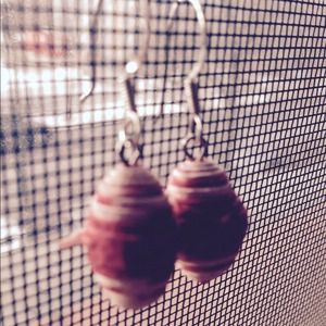 Handmade earrings that are coiled paper. Light pink color and darker red. Never been worn. Measure 3 1/2 cm from top to bottom.