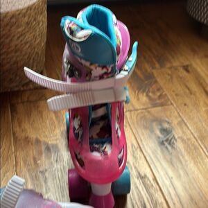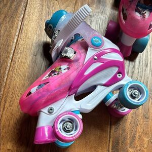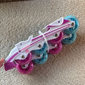 Vibrant roller skates with pink and blue accents. Perfect for fun skating adventures.