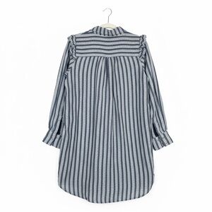 Roller Rabbit dress, 100% linen dress, striped linen dress, button front dress, linen tunic dress, coastal style dress, resort wear, summer linen dress, breathable natural fabric, casual boho dress, Roller Rabbit M, long sleeve linen dress, navy white stripe dress, lightweight vacation dress, timeless linen shirt dress, classic coastal chic