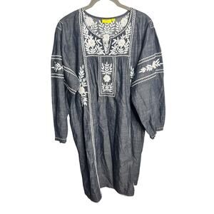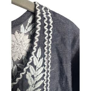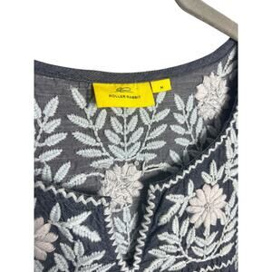 Roller Rabbit Abigail Dress Size Medium Boho Embroidered Blue White Cotton Denim