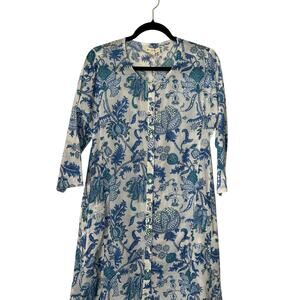 Roller Rabbit Amanda Anu Long Kurta Dress XS Blue Cotton Maxi Country Peasant