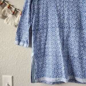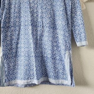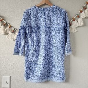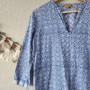 Roller Rabbit Amanda Geometric Printed Popover V-neck Tunic Top Blue Boho XS
