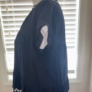 Roller Rabbit Black Embroidered Pamela 100% Cotton Tiered Mini Dress Size Small