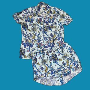 Roller Rabbit Blue Amanda Linen Lulu Set Polo Pajamas Paisley Print