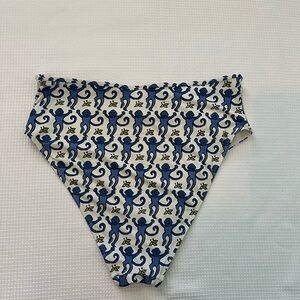 ✨Roller Rabbit Blue Monkey Print HighWaisted Bikini Bottoms LARGE