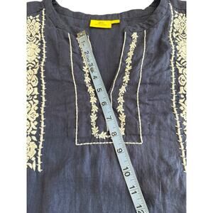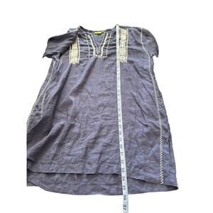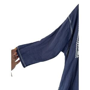 Roller Rabbit Blue White Stitched Lagenlook Boho Relaxed Tunic Dress Size Large