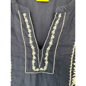 Roller Rabbit Blue White Stitched Lagenlook Boho Relaxed Tunic Dress