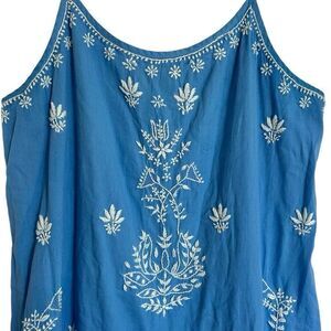 Roller Rabbit Blue Embroidered Spaghetti strap Dress size Large