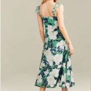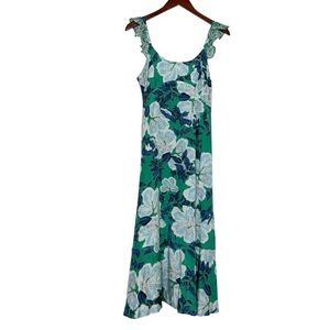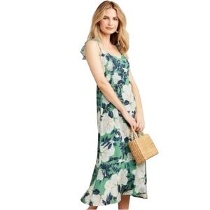 Roller Rabbit Clovis Quinn Floral Dress Green Midi Flutter Strap Sleeve SZ Small