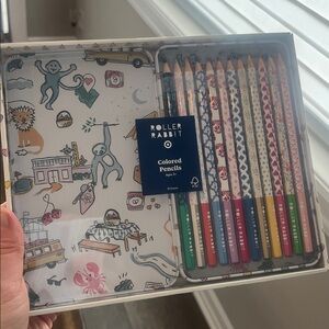 Roller Rabbit x Target Colored pencils set in a patterned tin. Perfect for art and creativity.