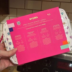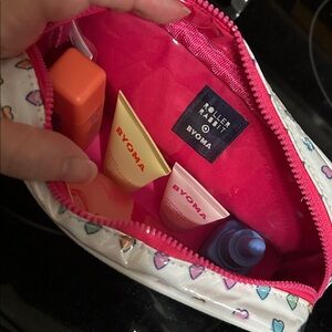 Colorful skincare kit featuring Roller Rabbit x Byoma collaboration. Includes vibrant packaging with heart designs.