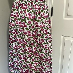 Roller Rabbit Dakini Lune Floral Maxi Dress Sleeveless Pleated White Green Sz L