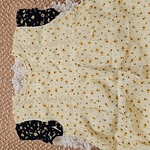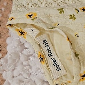 Roller Rabbit Sweet Treat Anastasia girls dress size 12, mini floral in shades of yellow and black, short flutter sleeves, round collar, smock style bodice, lace detail, 100% cotton, abalone buttons back closure, fully lined, worn once in excellent condition see all photos for details!