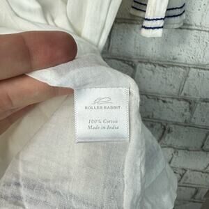 Roller Rabbit Dress Embroidered Cotton Mini Flare 3/4 Sleeve White Blue Pink XS