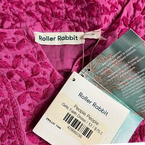 Roller Rabbit Dress Girls 12 Pink Embroidered Floral Faith Cap Sleeve