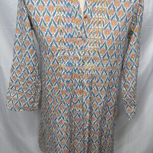 Roller Rabbit Dress Tunic Pink Blue Light Weight Cotton Pintuck pleat Coverup