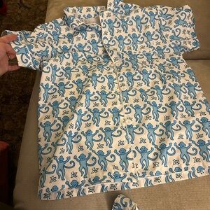 In great condition, but these are dupes. Not real roller rabbit. They fit my daughter when she was 10-11 so I would say they fit like a large kids.