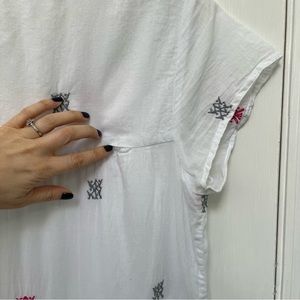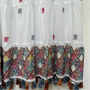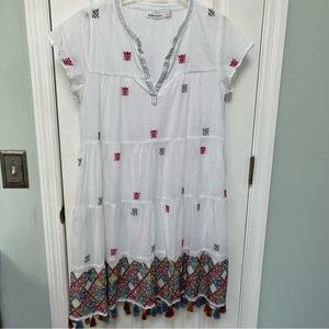 Roller Rabbit embroidered short sleeve tunic. White with colorful tassels. Split neckline.