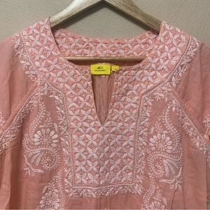 Roller Rabbit Faith Embroidered Cotton Top Size Medium Peach Coral White