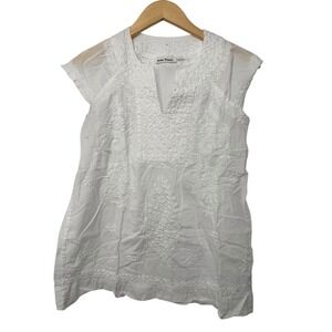 Roller Rabbit Faith White Embroidered Cotton Sleeveless Top Blouse Small Coastal