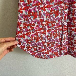 Roller Rabbit Floral Button Down Blouse Top Size L Pink Red Cotton