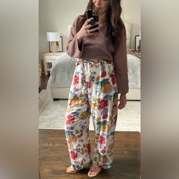 Beautiful and comfortable Beachy wide leg pants from Roller Rabbit. Colorful floral print. Zip at the back and have pockets. Tie at waist can be removed. Size Medium. Excellent condition.