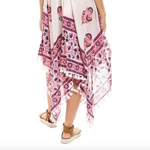 Floral Scarf Dress in white and pink combo with handkerchief hem and tassel accents