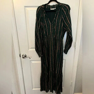 Roller Rabbit Garnet Mateaus Dark Green Stripe Cotton Dress