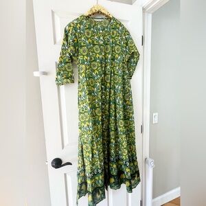 Roller Rabbit Green Zana Button-Down Maxi Dress