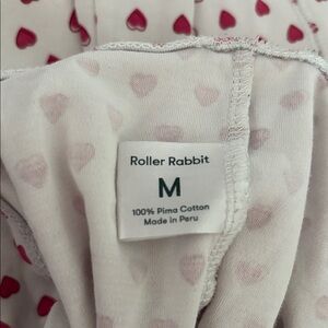 Soft Roller Rabbit pajama pants with pink heart design. Ideal for relaxation. Size medium- fits a small too. Very minimal discoloration.