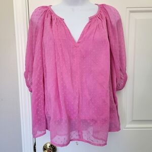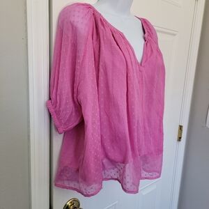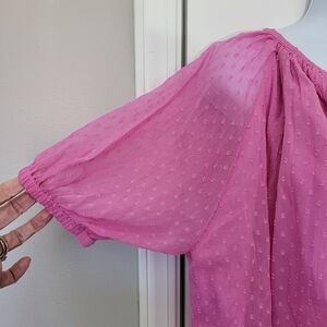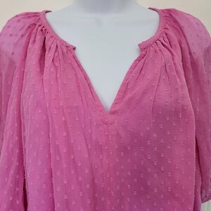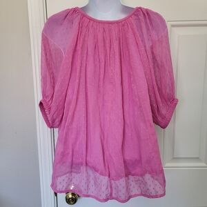 Roller Rabbit Hot Pink Sheer Lined Swiss Dot Puff Sleeve Blouse Size Small
