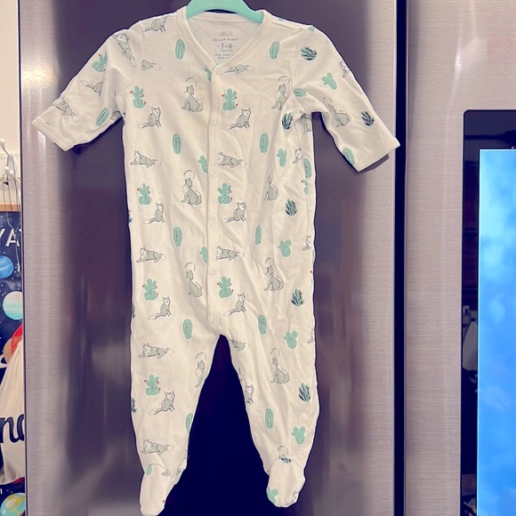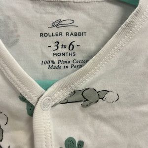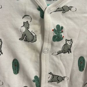 Adorable howling coyote print with cactus snap onesie from Roller Rabbit. Small barely noticeable stain on left chest. Super breathable!