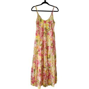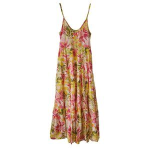 Roller Rabbit Imza Maxi Dress Dakota Floral Tiered Ruffle Skirt Silk Cotton S