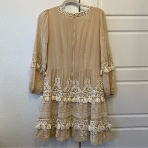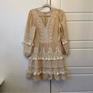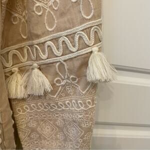 Embroidered throughout with tassel detail and puff sleeved. Missing one tassel.