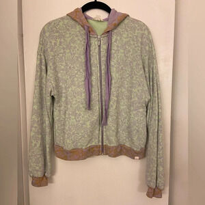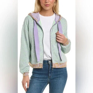 Roller Rabbit Ismay Blair Floral Zip Up Hoodie Mint Green & Purple Size Medium
