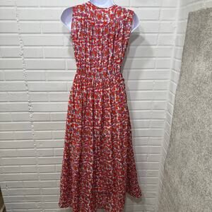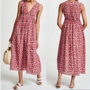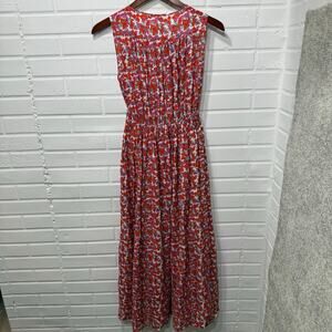 Roller Rabbit Joana Lune Midi Floral Dress Cotton Silk Sz Sml Flowy Smocked Red