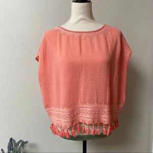 Roller Rabbit Lalla Pink Embroidered Cotton Tassel Top XS