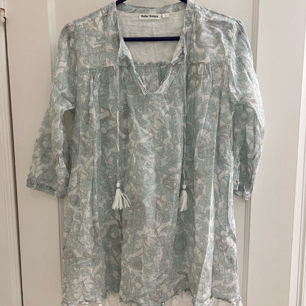 Charming light blue top with delicate patterns. Ideal for everyday style.
