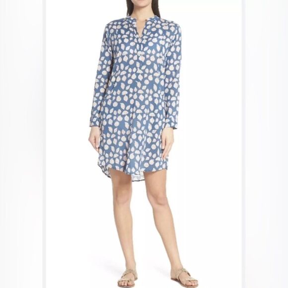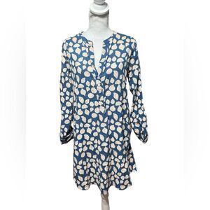 Roller Rabbit (M) Cora Mercury Blue Seashell Split Neck Long Sleeve Mini Dress