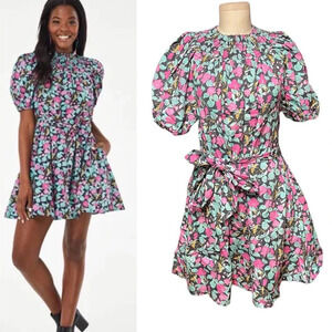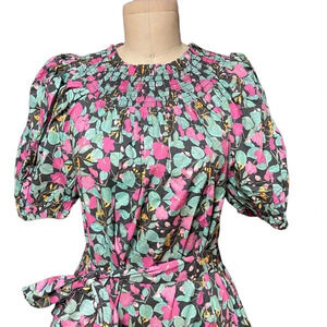 Whether you dress it up or down, you'll make an effortlessly bold style statement when you step out in this cotton poplin dress. This swingy shift dress is embellished with a vibrant, hand-painted floral print, on-trend puff sleeves, a removable belt and an elasticated smock neckline. Can be worn a-line or cinched with a belt!