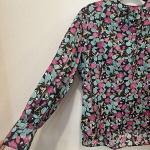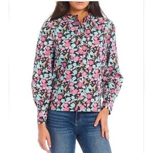 Roller Rabbit Manusa Glenda Top Floral Long Balloon Sleeve Cotton Size L