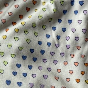 Charming pajama set with multicolor heart design. Soft and comfortable for lounging.