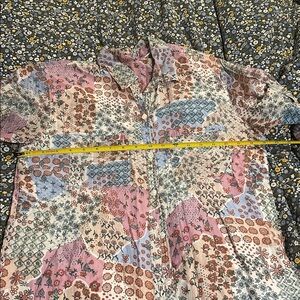 Stylish dress with a vibrant patchwork design. Features long sleeves and a button-down front. Perfect for casual outings.