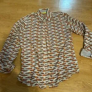 Stylish men's shirt featuring a vibrant multicolor pattern. Perfect for adding a pop of color to your wardrobe. Size small.