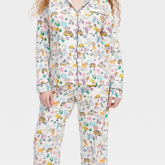 Women's Roadtrip Long Sleeves and Pants Pajama Set Blue/Yellow/Pink - Roller Rabbit x