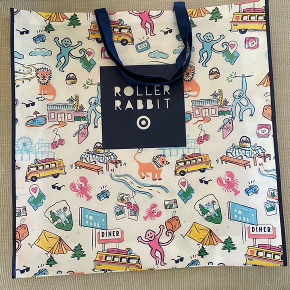 Charming tote with whimsical illustrations. Features Roller Rabbit branding. Super spacious.
