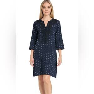 Roller Rabbit Navy Embroidered Cotton Mini Dress Women's Small