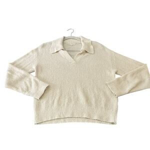 Roller Rabbit Organic Cotton Blend Oversized Rocio Collared Sweater Cream Beige